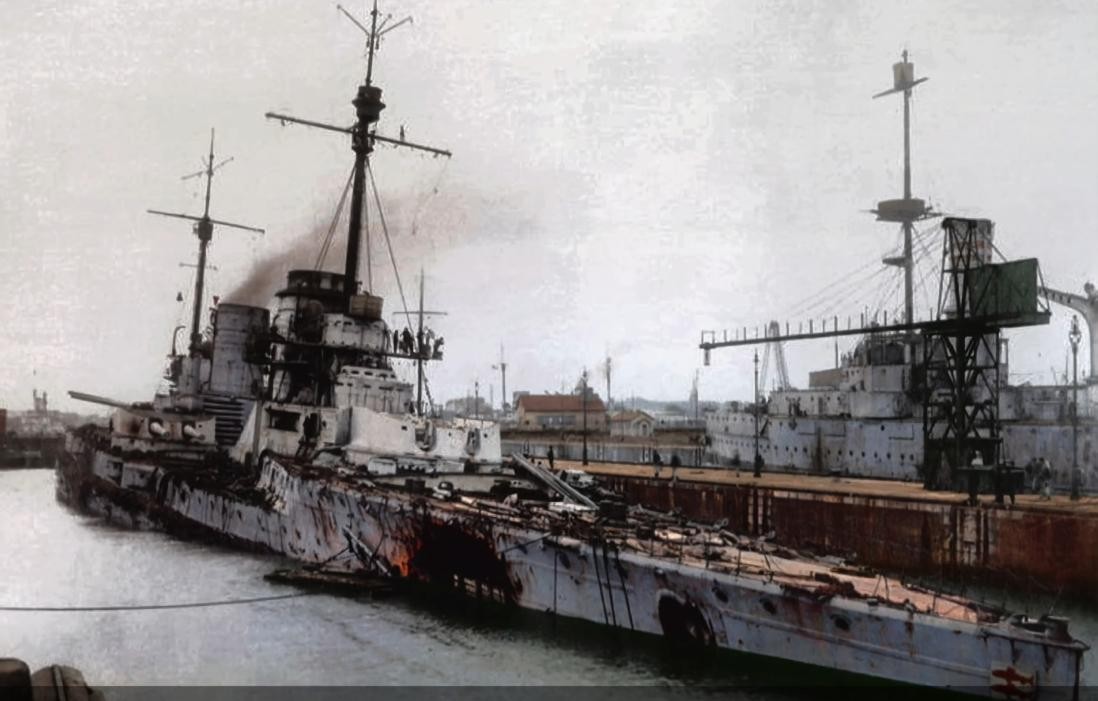我们从赛德利茨号战役后的照片来看,其前主炮塔天灵盖都被掀了,还有很多弹痕也显示敌军的大口径火炮确实击穿了装甲。尽管如此,只要战舰自己的弹药库没有殉爆,凭借众多的防水隔舱,战舰依然可以重伤不沉,幸存下来。