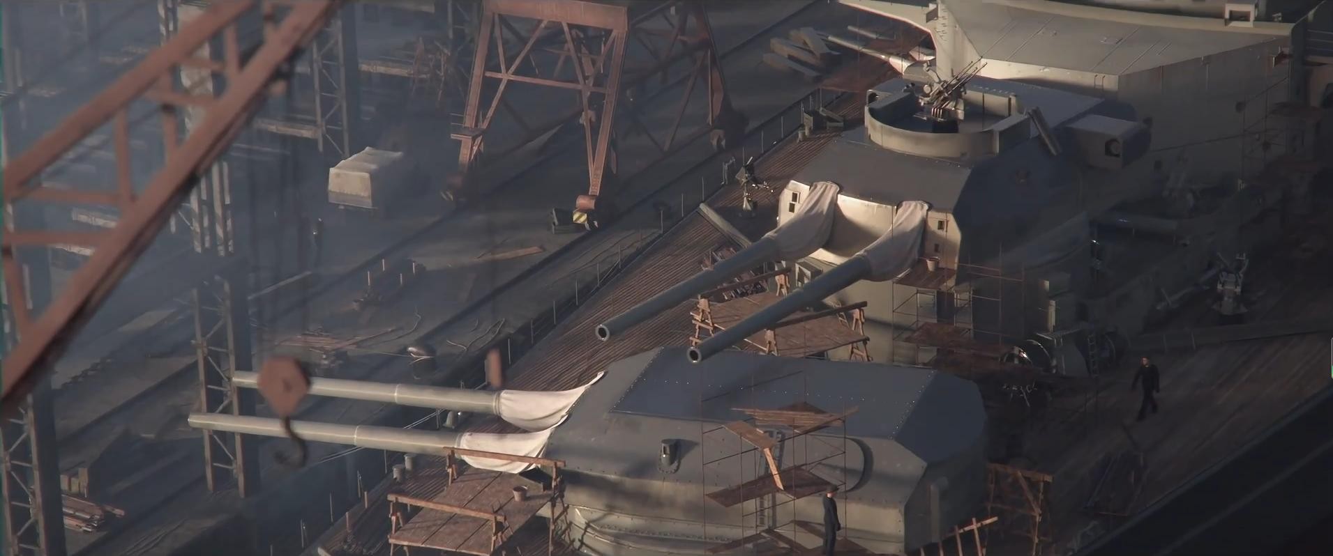 诶,从它的这种设计可以看出,当时的舰炮射程都比较近,主要靠平射火力杀伤。如果像后来的舰炮那样有远射程的曲射弹道,这敞篷设计的“炮塔”如何应对从天而降的炮弹?!