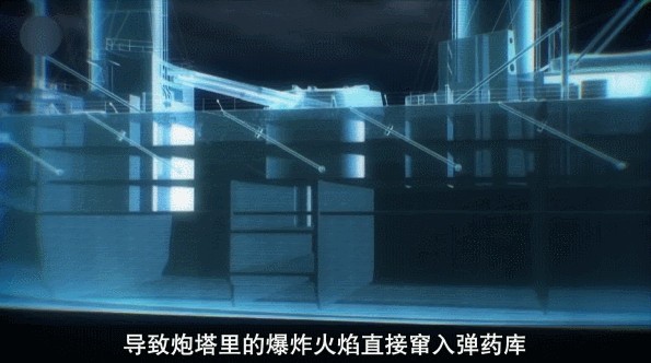 而英国战巡的殉爆沉没恰恰来自主炮塔的战损,而且是由于人为疏忽。不管是战巡还是战列,庞大主炮所需要的弹药都深藏在战舰下层,由重装甲保护。需要开炮时,将炮弹通过竖井通道提升上来到炮塔内,再进行装填开炮。