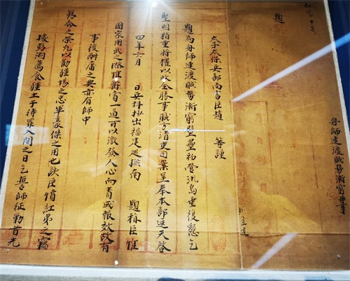 在展厅的第一单元,有件文书——《明天启四年兵部尚书赵彦题行稿官兵渡海收复澎湖》。隔着几个展柜,但和它配套的《明天启五年赵彦等条陈澎湖善后事宜题行稿》残件,说的都和荷兰人入侵澎湖相关。