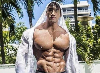黄哲勋的肌肉身材让很多欧美人都望而却步,他的肌肉如磐石一般结实有力,甚至可以跟巨石强森一较高下。