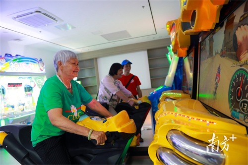 这个金秋时节,来“游乐场”的老人更多了。来自东莞各个社区的老人纷纷“组团”涌入,操作娃娃机体验“万物皆可夹”,在赛博朋克的电玩厅里解锁“速度与激情”,踩着动感单车进入沉浸式世界……在这里,既能锻炼身体,又能愉悦心情,还能在竞技比拼中找到运动“搭子”,共度老年欢乐时光。