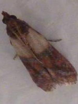 小型蛾子,体长5-9mm,翅展13-1mm。头部灰褐色,腹部灰白色。前翅细长,基半部黄白色,其余部分亮赤褐色,并散生黑色斑纹,后翅灰白色。幼虫为害各种粮食和加工品,其中以禾谷类和豆类等受害最重。对人体无害白色。