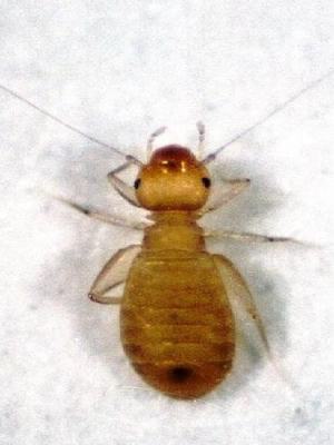 体长1-3毫米。无翅、头大。常生活在书籍中,或蠼螋谷物中,大量发生时可在桌面等幼虫密集。对人体一般无害。