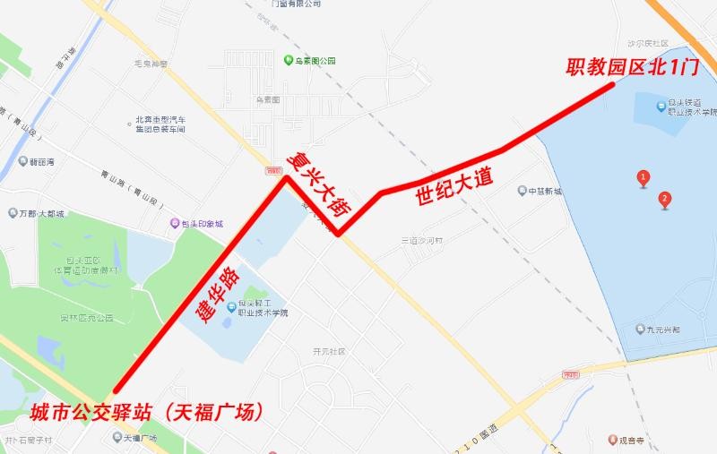 2.线路走向:城市公交驿站—建华路—复兴大街—世纪大道—职教园区北1门;