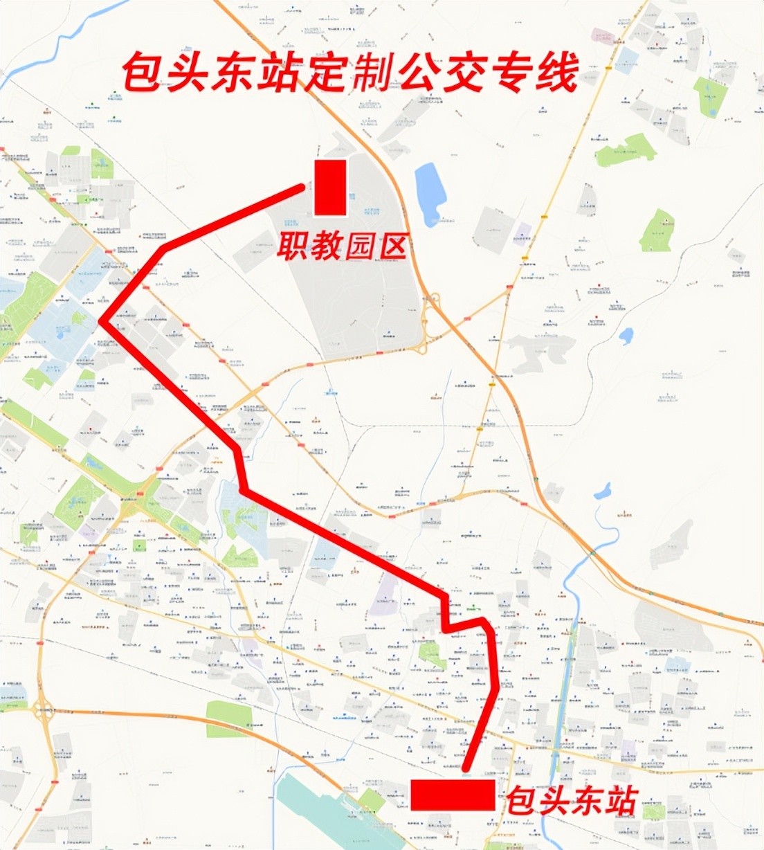 2.线路走向:包头东站—南门外大街—和平路—西门大街—内环路—青山路—世纪大道—职教园区北1门;
