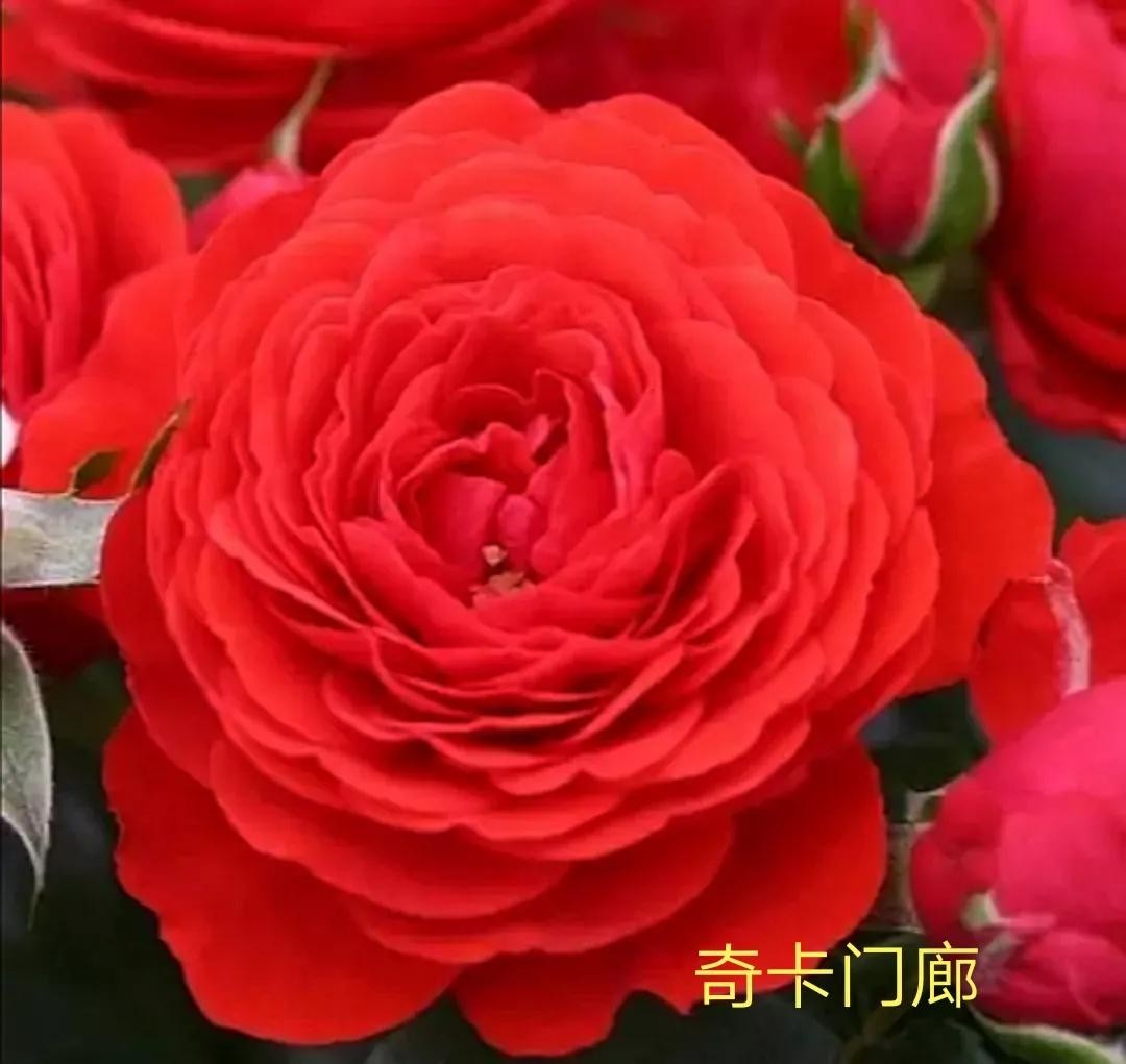 8.奇卡门廊:株高90厘米,花径6厘米,红色淡香,多季勤花丰花。奇卡门廊开花性极好,非常重瓣,花色鲜红,十分喜庆,花量巨大,植株紧凑,分枝性好,抗病耐寒。