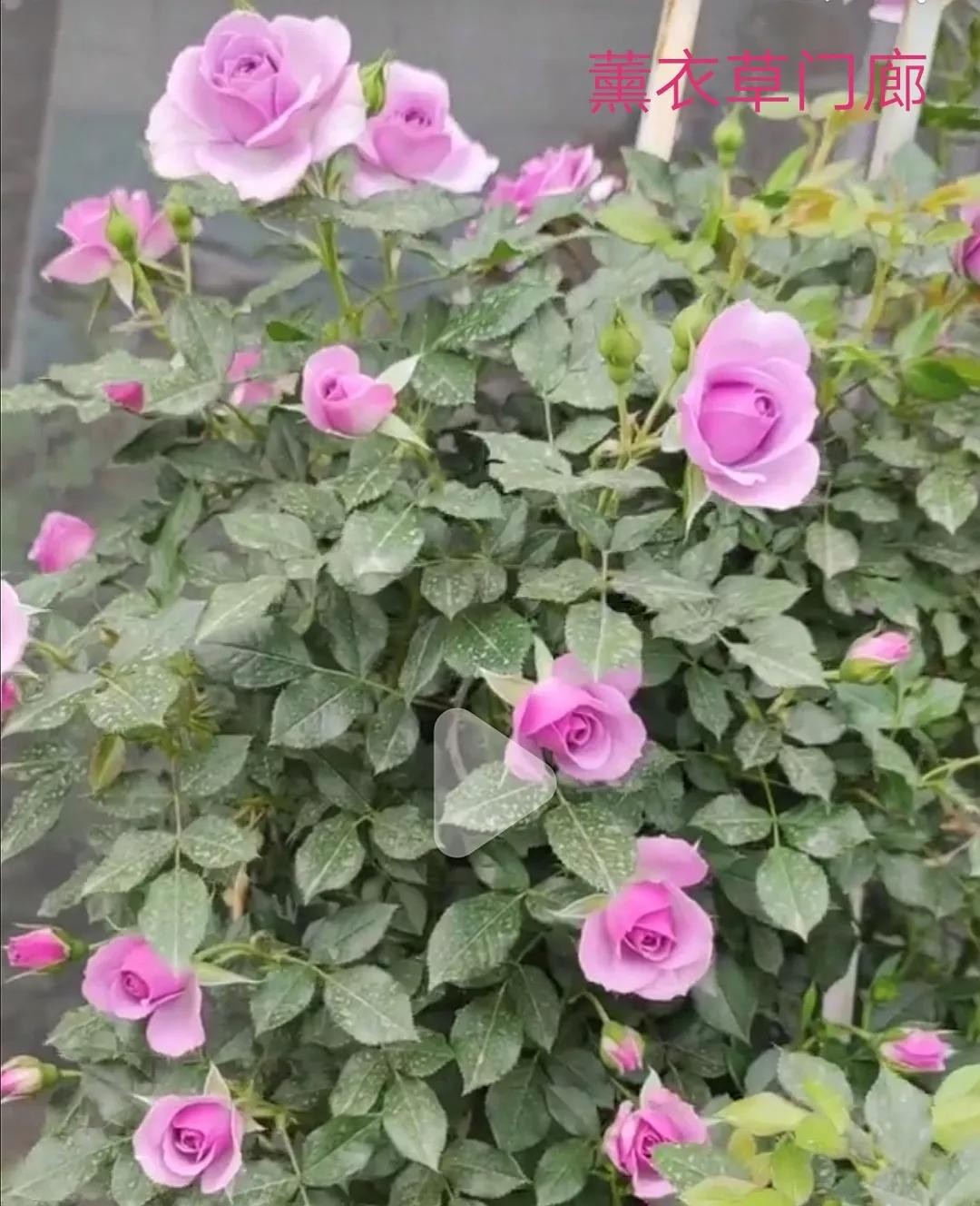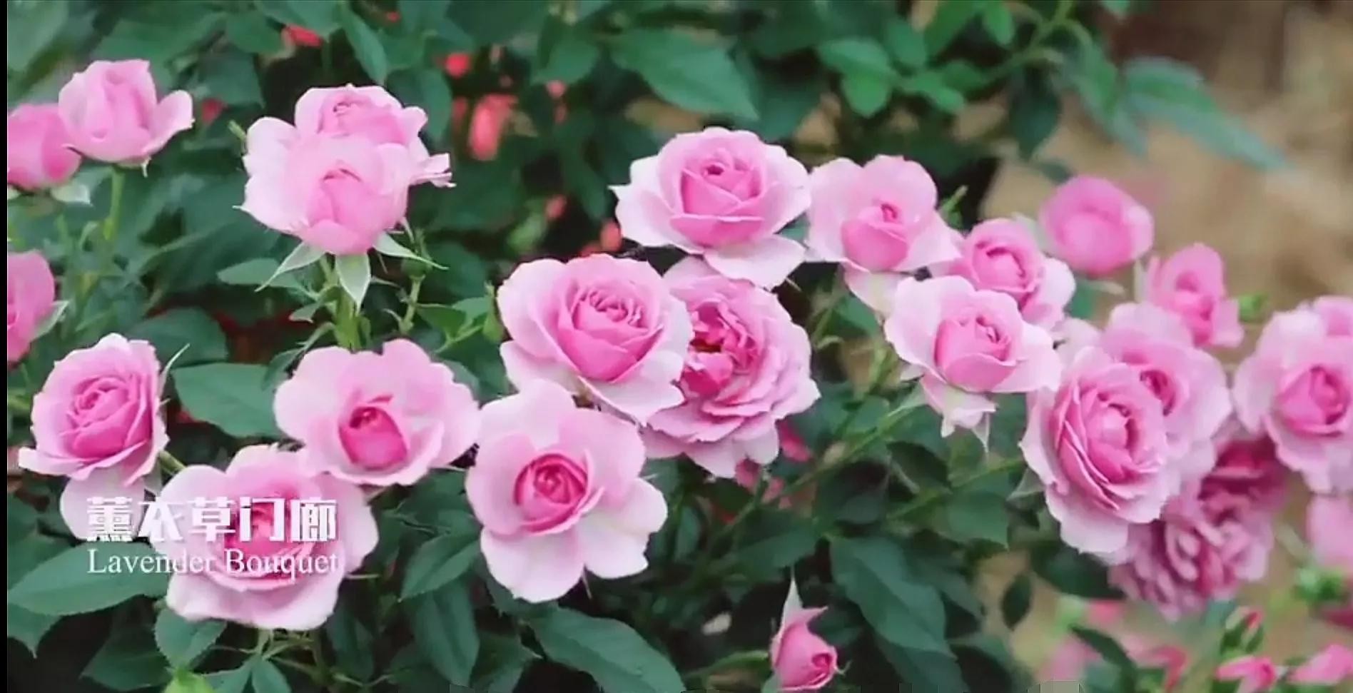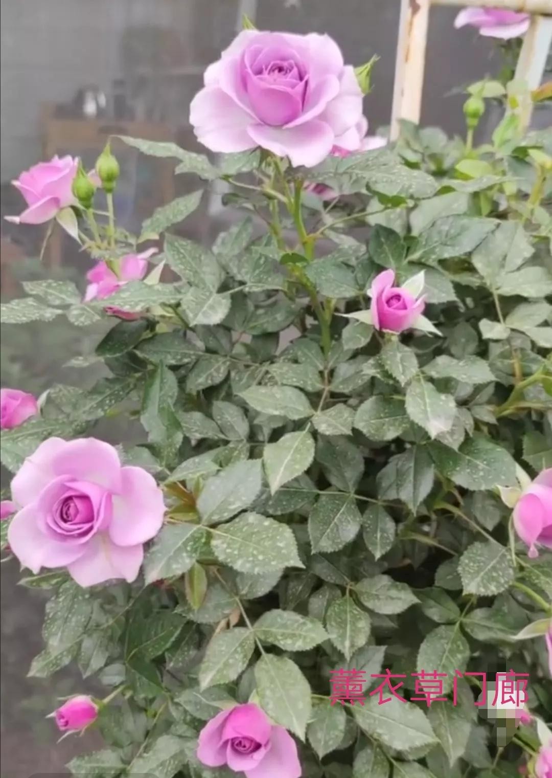 10.薰衣草门廊:株高60~100厘米,花径6厘米左右,淡紫色,多季勤花丰花。薰衣草门廊是微型月季,群开效果非常壮观,花量大,复花快,几乎花开不断,无香。枝条浓密,分枝性好,直立、多头,非常抗病虫害,夏季表现也非常不错,只是花型稍有松散,花色稍淡。