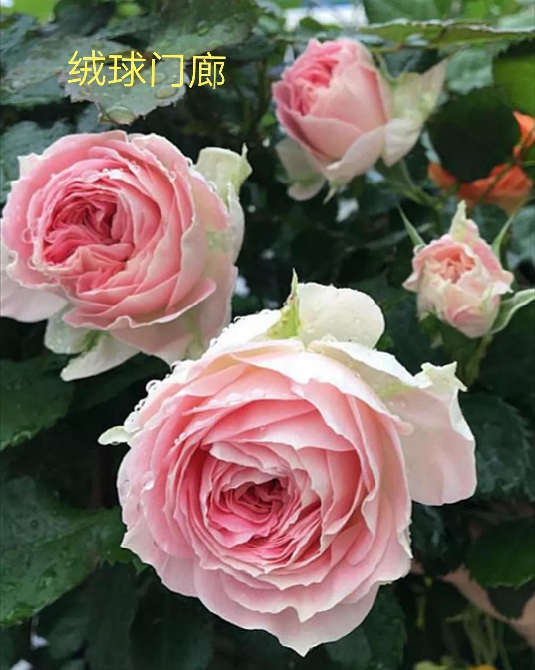 1.绒球门廊:株高80厘米,花径5~6厘米,浅粉色淡香,多季勤花。绒球门廊人们习惯称作门廊绒球,包子状花型,花边淡绿色的白花,有淡粉红色的花芯,好看,耐开,随着花朵的开放粉色逐渐增多,完全开放就是一个内粉外白的包子,在翠绿油亮的叶片衬托下,显得非常高贵优雅。多头开花,花型漂亮,花量大,花期长,复花快;长势好,抗病性强,耐晒耐热。缺点是前期长势慢,后期生长迅猛,香味淡,几乎无香,可地栽也可盆栽,嫁接棒棒糖效果也很好。