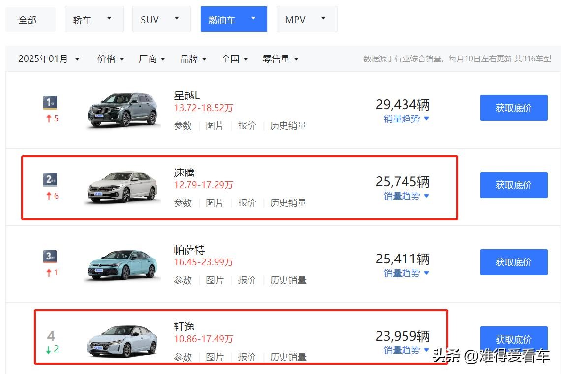 最新数据显示,轩逸今年1月卖了4.3万辆,速腾紧随其后3.8万辆,但把时间拉长到2024全年,轩逸以41.6万辆的绝对优势稳坐榜首,速腾则卡在27万辆区间,这就像两个班级的学霸,轩逸是全年稳居前三的模范生,速腾则是偶尔考进前五的黑马,不过销量数字就像相亲时的身高体重,真正决定长期幸福度的,还得看内在品质。