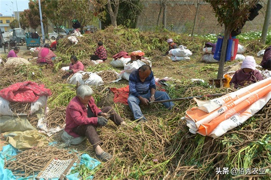 牡丹种植户张大娘,正和请来的邻居们整理刚收获的牡丹根茎,据她介绍:“药用牡丹正常生长周期为6年,这个时候上市的丹皮无论是产量、还是成色都是最好的,当然,牡丹也可以无限延长生长,比如当前的牡丹,由于行情太差,农户卖不够本钱,便索性任其在田地里生长,盼到行情好的时候再进行销售,如今生长10年以上的牡丹,在村子里比比皆是,除非一些等待不及、又想改种其它作物的农户,这才忍痛贱卖。”