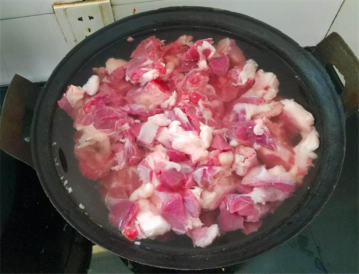 第一步:锅中倒水,放入切好的羊肉。把羊肉冷水下锅。冷水下锅能够更好地把肉里面的脏东西给激发出来。