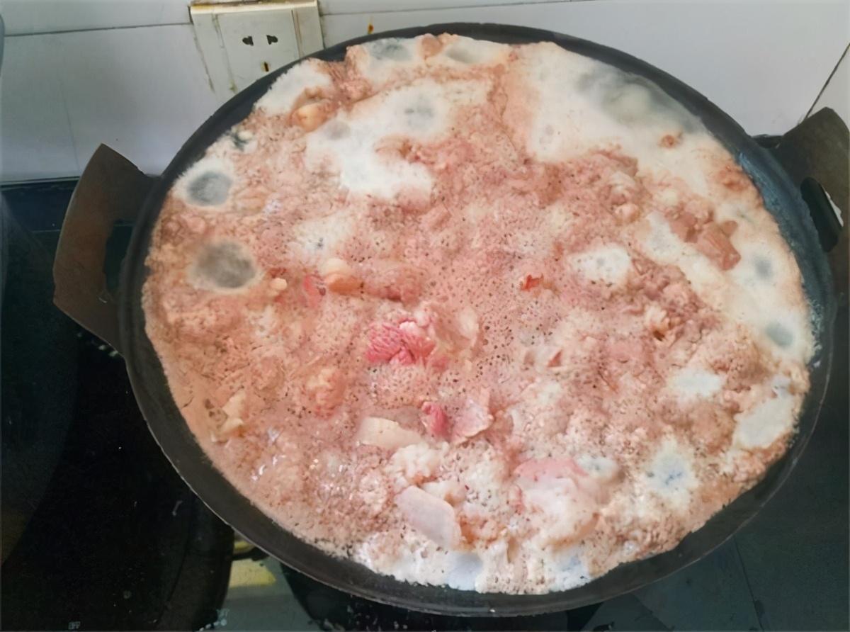 3、老板说炖羊肉的时候,他什么都不放,一个调料都不放,就刚开始放点姜片和大葱煮一下去一下血沫和脏东西,打捞浮沫的时候和葱姜一起就捞出来扔掉了。