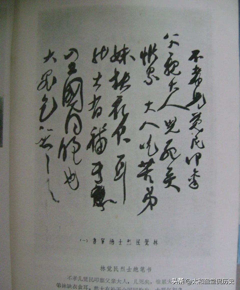 面对清政府的审讯,林觉民侃侃而谈告诉他们:只要革除暴政建立共和能使国家安强,自己死也瞑目。