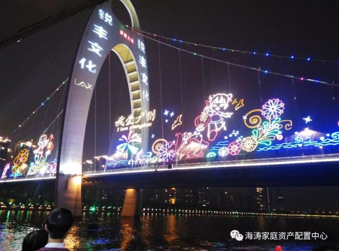 同学赶过来在花城广场请我们吃了晚饭,又从海心沙附近买票一起做游轮欣赏珠江夜景。
