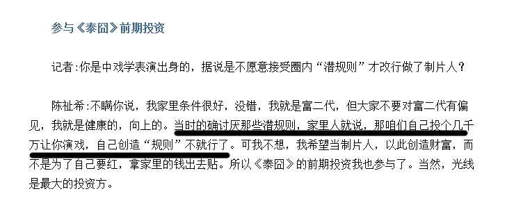 有传言是陈祉希不愿意接受潜规则,但她本身又挺喜欢这个行业。