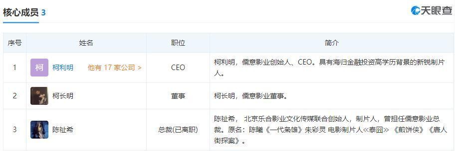 但儒意影业一直和陈祉希息息相关,她原本就是儒意影业的总裁。但《敢问路在何方》前几年的宣传,当时站台的是儒意影业的总裁柯利明。