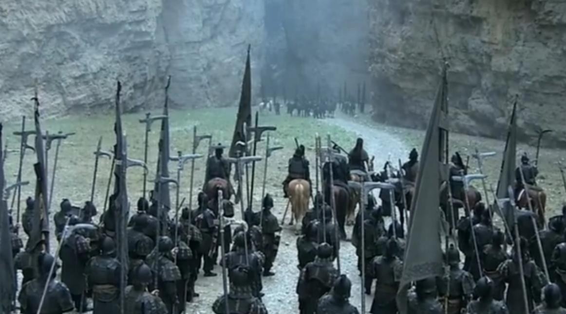电视剧电视剧《三国演义》剧照,曹操在华容道遇到诸葛亮派遣的拦截军队