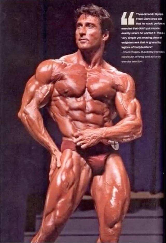 弗兰克·赞恩,住美国加利福尼亚洲。美国著名健美运动员,曾获得多届奥林匹亚先生比赛冠军。弗兰克·赞恩是健美历史上第一个改变裁判标准的人,他从不追求过大的肌肉块,而总是把匀称和线条放在第一位。