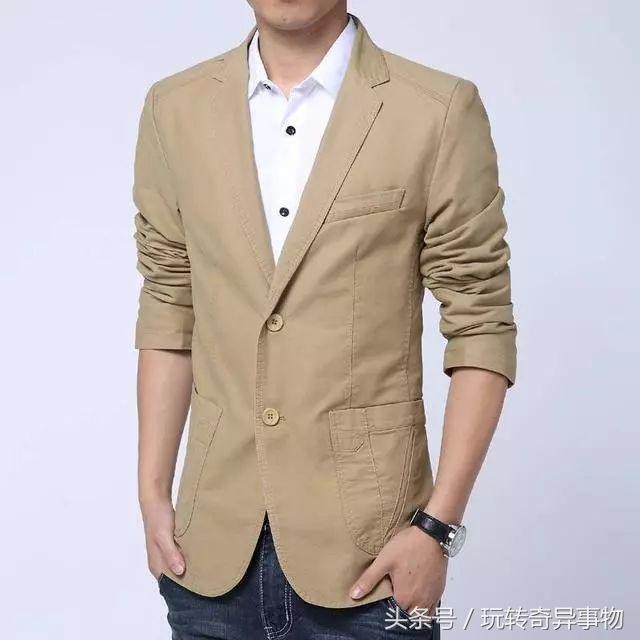 其实这件衣服不能算严格意义上的西服,但是可以叫职业装。因为卡其色本来就给人一种不庄重的感觉,再加上插手兜那里的剪裁,就更不能当西服了。