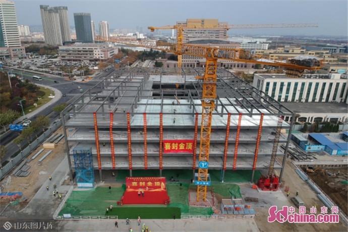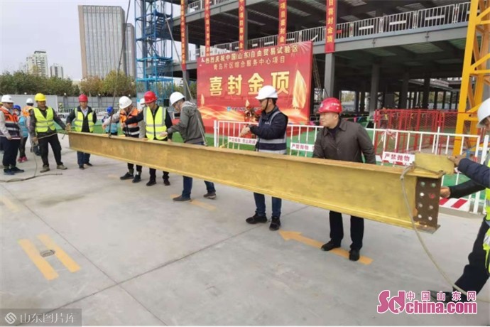 最新进展!中国(山东)自由贸易试验区青岛片区综合服务中心项目钢结构主体封顶