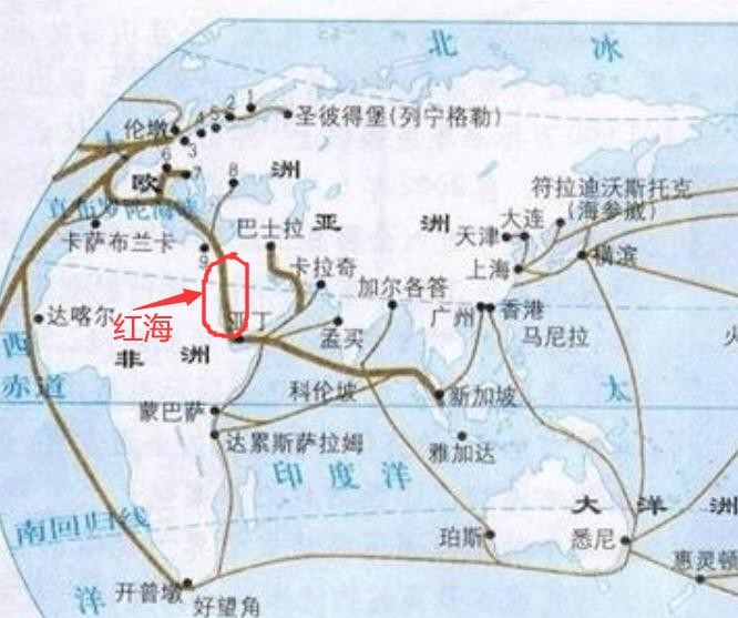 红海是世界上最重要最繁忙的航线之一,是亚洲、非洲、欧洲之间连结通道;西亚的能源、东亚的工业品、欧洲的高科技产品,主要都是通过红海海运相互沟通的。否则,就只能走非洲航线,即称为“风暴角”——好望角。这里常年都是8级以上大风,海况复杂,且路程遥远,不利于海运。
