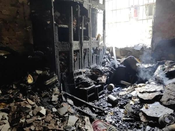 记者来到事发处看见,着火的居民房已经十分老旧,火是从2楼开始燃起。大火过后,2-6层外墙被熏黑,3楼的空调外机被烧毁,还有外墙悬挂的一些衣物也被烧烂。