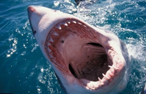 大白鲨又称噬人鲨,是最大的食肉鱼类,尾呈新月形,牙大且有锯齿缘,呈三角形,是大型进攻性鲨鱼。正因为其特别巨大型,可以认为已经是食物链最终极猎食者。