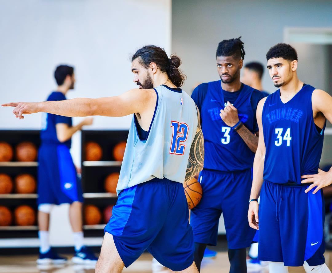 另外,雷霆在官方Instagram中晒出了一张保罗-乔治以及史蒂夫-亚当斯训练营的照片(如下)。