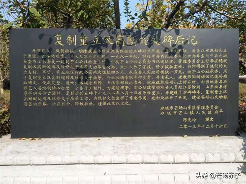 为此,在1982年,当时的商丘地区行政公署和永城县人民政府又拨款按原碑模样复制了一通石碑,当年8月便立于原址,原来的断裂石碑移至文物管理所保管了起来。复制后的石碑,规格大小与原碑完全一致,立于六角六棱、上复黄色琉璃瓦的十分壮观的碑亭里,座在一个巨型的石雕乌龟上(赑屃)。这通石碑的碑文由当地的老教师郑效治书写,雕刻者为芒山镇石雕老艺人晏鸿钧。2005年永城市委、市政府筹资复修斩蛇园,易名汉兴源,意为汉朝兴起的源头,刘姓发迹之地。