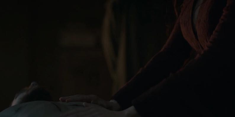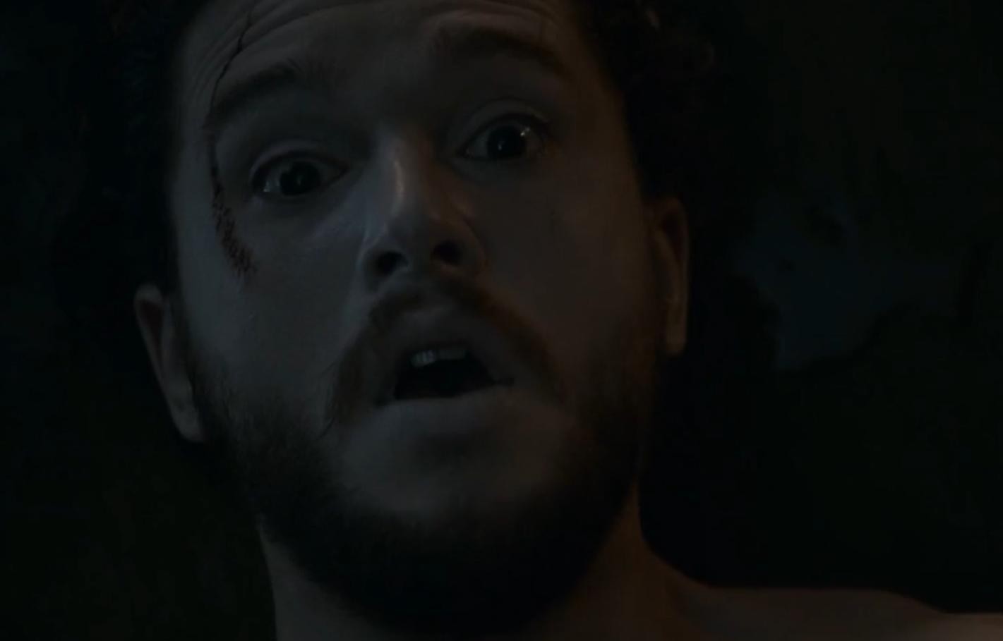 雪诺突然睁开了双眼,仿佛从噩梦中惊醒一般……然后第二集结束
