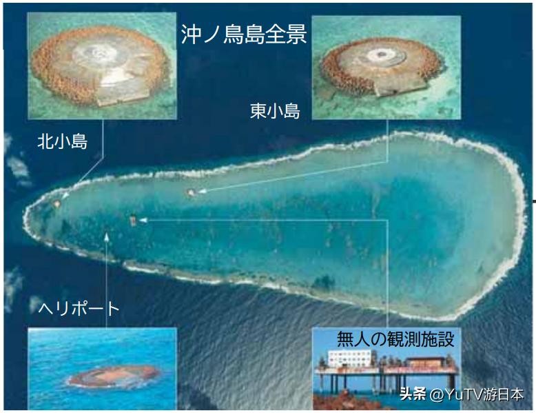 被水泥和铁网围起来的这两块石头,就是组成冲之鸟岛“全部”陆地的“北小岛”,“东小岛”。之所以用水泥层层保护起来,是为了使其始终露出海面,从而可以被称为“岛”,要不然它就是“礁石”了。“岛”能给日本带来方圆200海里的专属经济区,而“礁石”则不能。