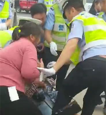 女子骑三轮被查,为逃避处罚抱孩子倒地撒泼