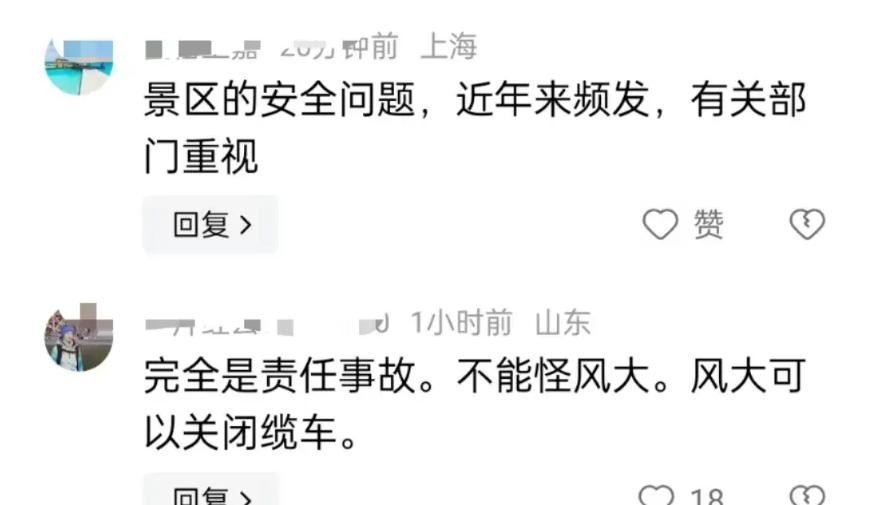 “景区的安全问题最近频繁出现,相关部门必须给予足够重视。这次虽然有大风,但大风绝不能成为事故发生的借口。安全措施应该能够应对各种复杂情况,确保游客的生命安全。”
