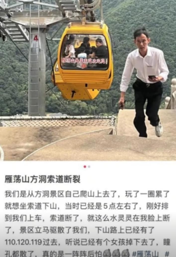 网友上传的现场视频显示,坠落事故并非风力所致,而是缆车索道断裂。真相究竟如何,还需官方调查来厘清。