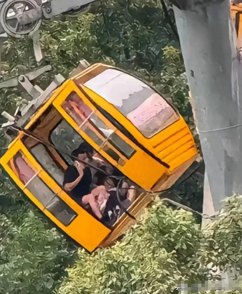 从一些图上来看,那辆出故障的缆车在半空中已经歪了一大截。万幸的是,缆车刚启动没多远,距离地面也就十几米的样子,大概四五层楼高吧。你想想,要是从那么高的地方掉下来,后果得多严重?