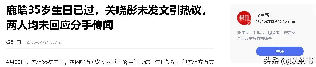 一则“分手传闻”在网络发酵,有人爆料鹿晗生日时关晓彤未公开祝福,甚至传出“婚变”猜测。