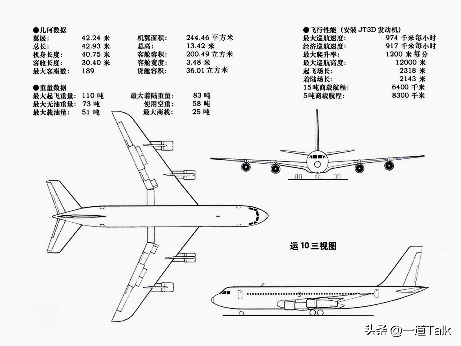 仅从技术指标上,运10并不逊色于40年后的C919。
