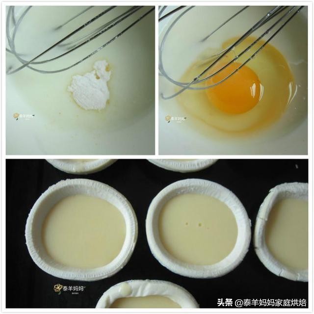 【所需食材】蛋挞皮6个,鸡蛋1个,淡奶油50g,牛奶20g,白糖30g,吉士粉2g。