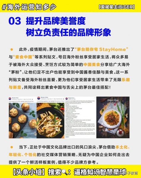 此外,疫情期间,茅台还推出了“茅台陪你宅 StayHome与“素食中国”等系列贴文,号召海外粉丝享受居家生活,将众多易于被海外大众接受、烹饪方式较为简单的中国美食分享给广大海外“茅粉”,让他们足不出户也能享受到中国酱香佳酿与美食。这一系列贴文备受海外粉丝喜爱,更为他们享受居家生活带来了无限乐趣与新意,共同诠释出素食中国与舌尖上的茅台最佳搭配!