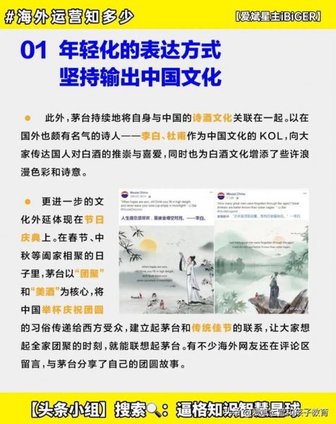 当下,正处于中国文化品牌出口的风口浪尖,茅台借助本土化、年轻化、个性化的社交媒体营销策略,无疑为中国企业如何走出去提供了一个鲜活样板案例,值得不少品牌方参考。