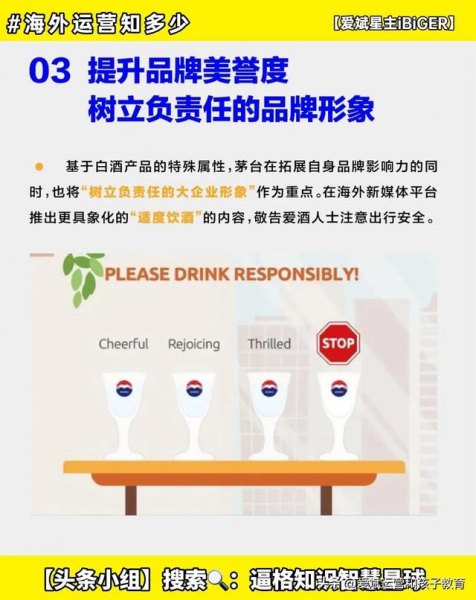 ✅基于白酒产品的特殊属性,茅台在拓展自身品牌影响力的同时,也将“树立负责任的大企业形象”作为重点。在海外新媒体平台推出更具象化的“适度饮酒”的内容,敬告爱酒人士注意出行安全。