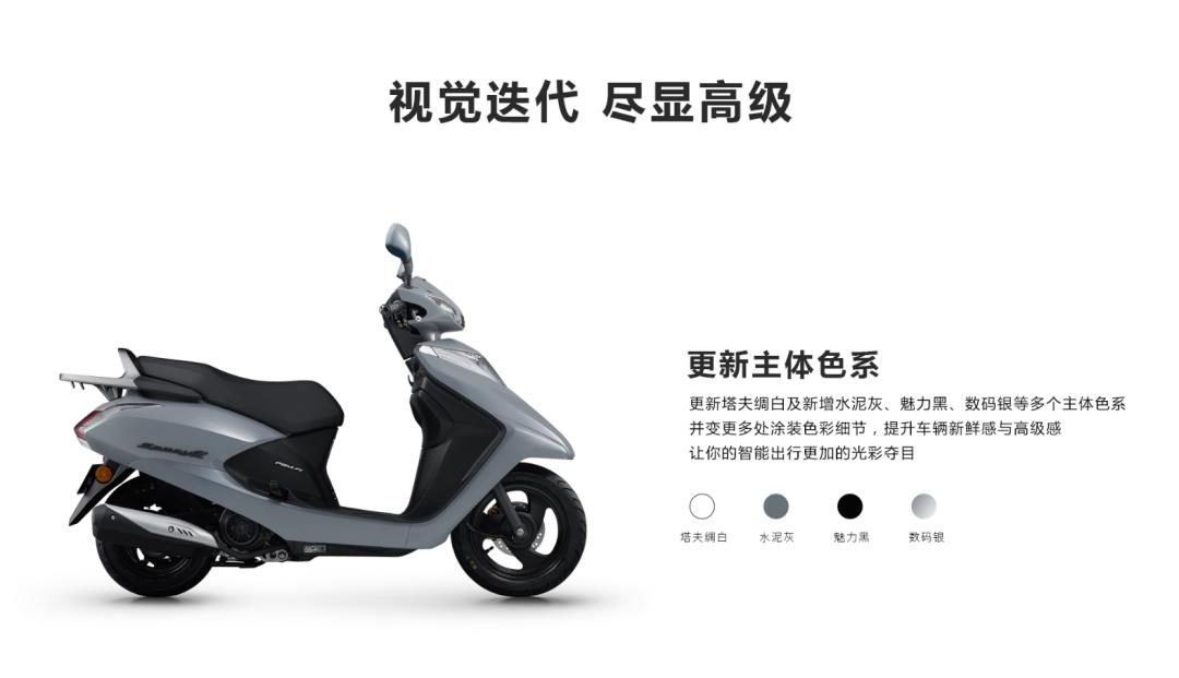 2025版spacyα睿御110,在全面智能化的国四睿御110基础上更新水泥灰等主体色系,进阶全新色彩视觉迭代车型,智能与时尚同时兼备,由内至外,散发高级感的科技气息!