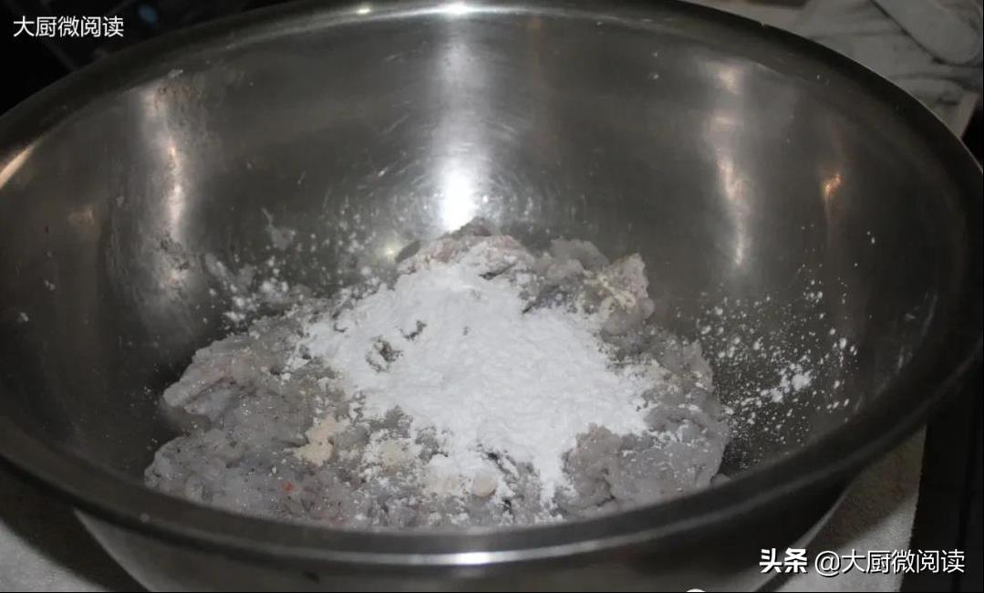 3.加盐5克、味精3克、生粉、澄面各30克拌匀。