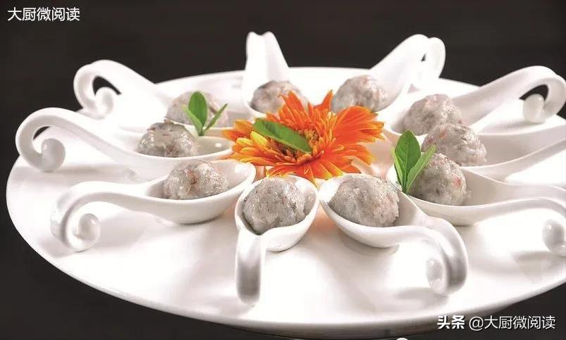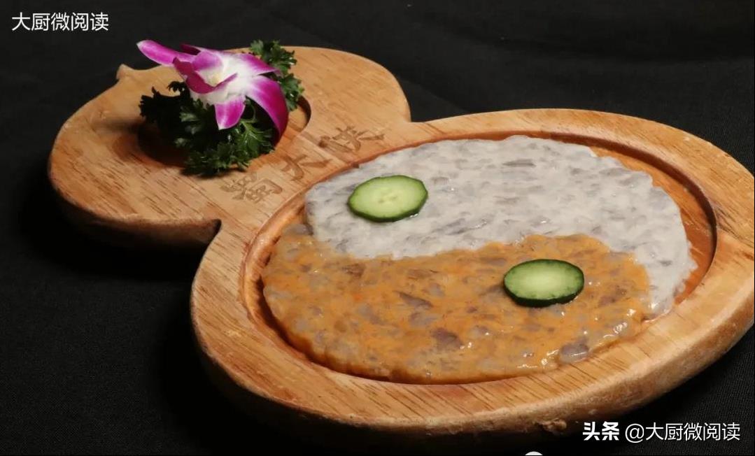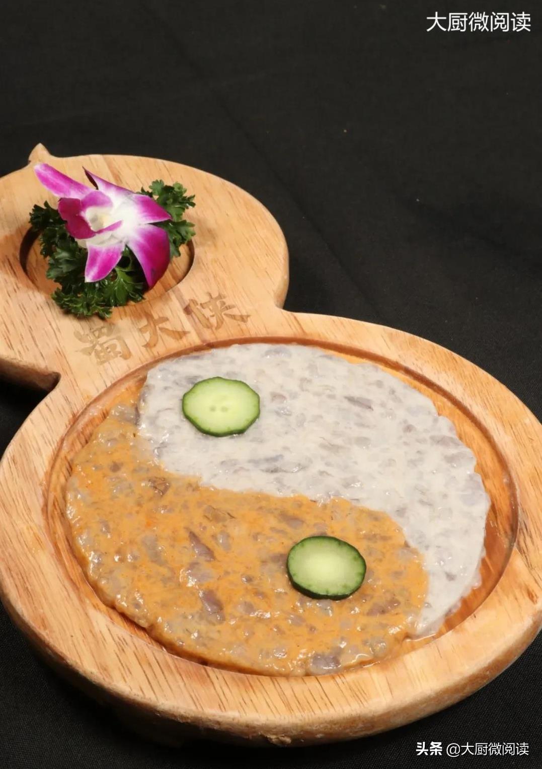 将普通的虾滑升级,一半做成白味,一半做成辣味,拼成太极形上桌。