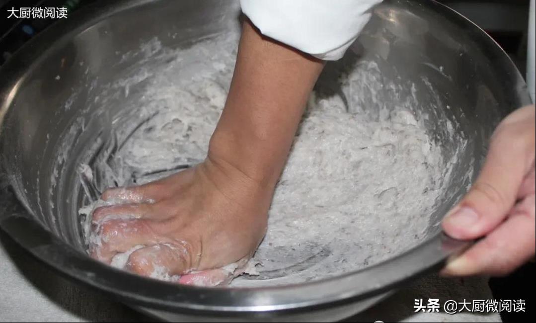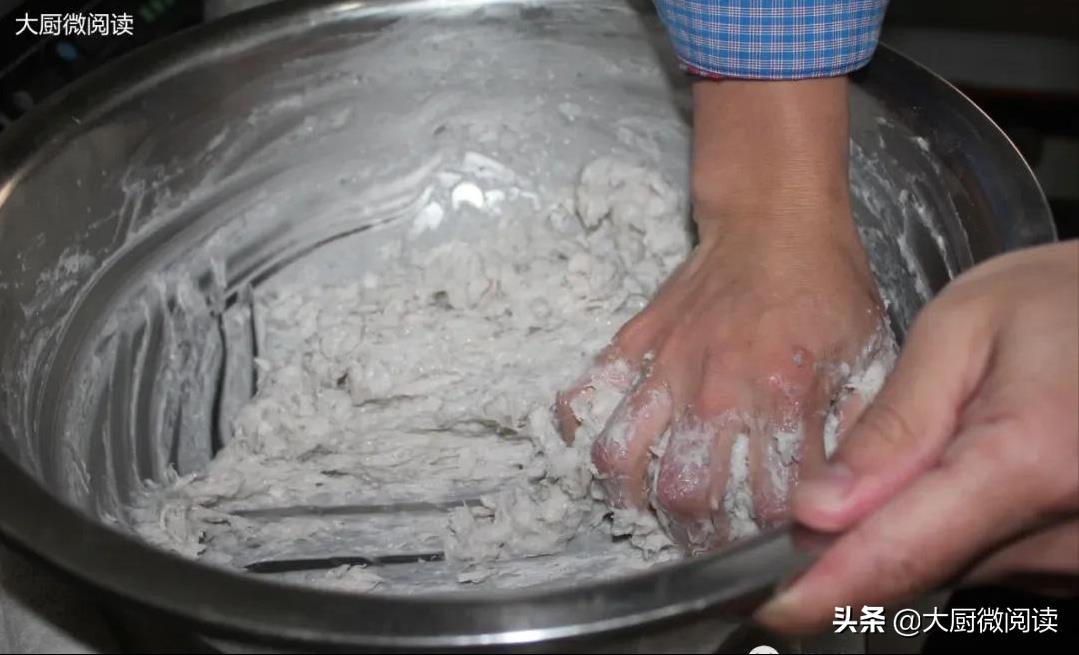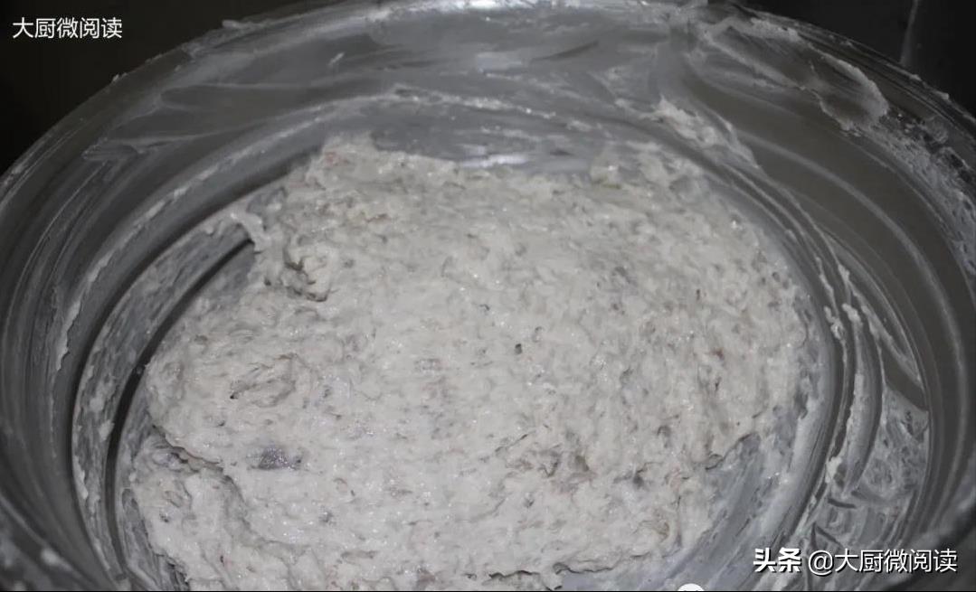 7.摔打10分钟,从虎口处挤成丸子,标准是每三个丸子重约55克,然后封保鲜膜入冰箱冷藏一晚定型即可。