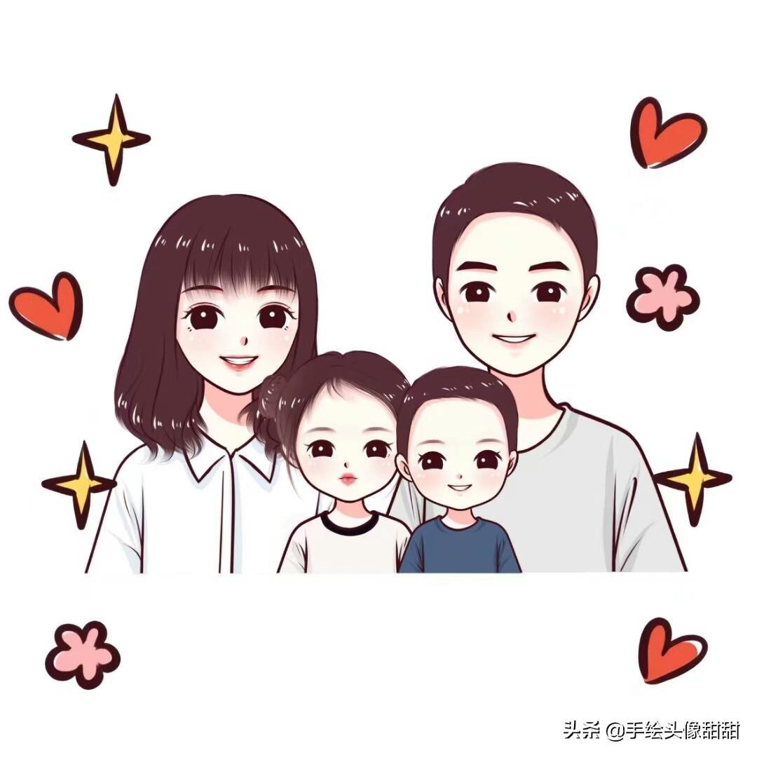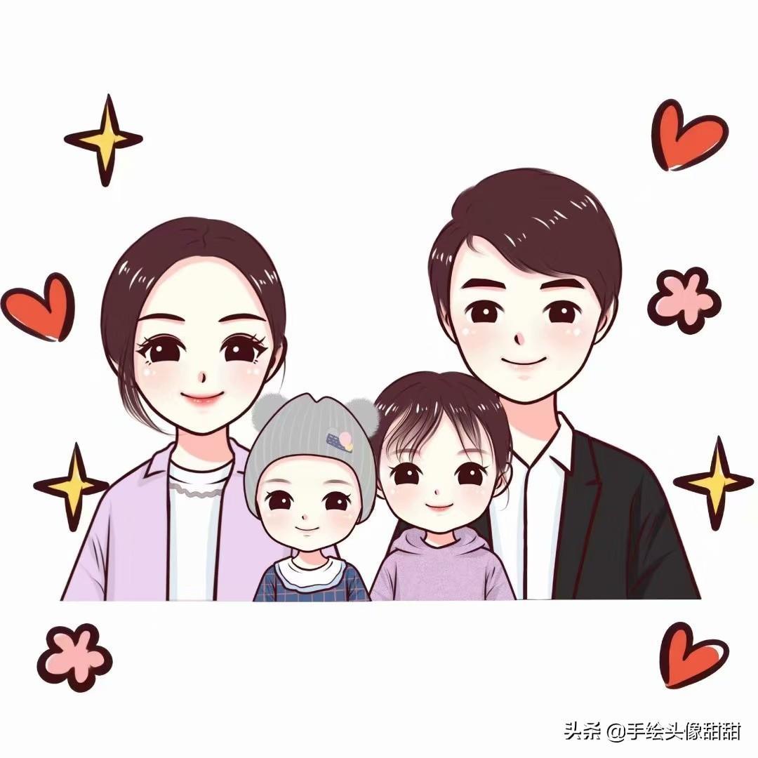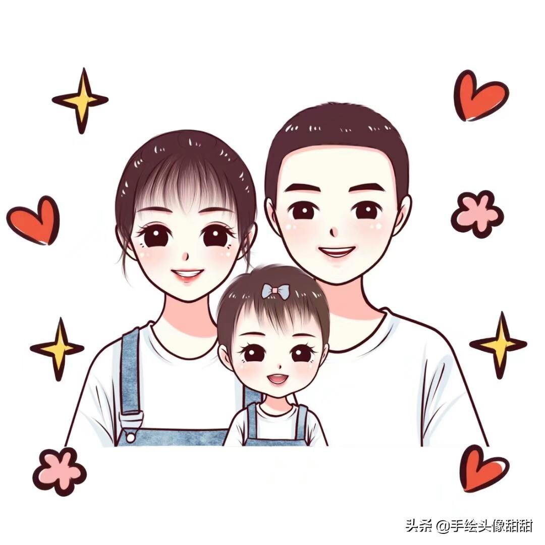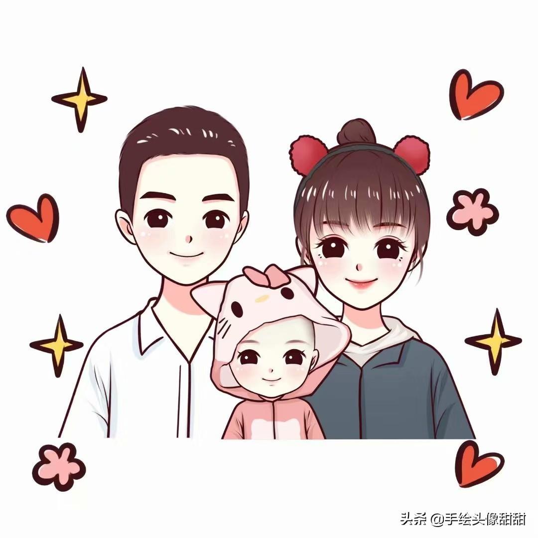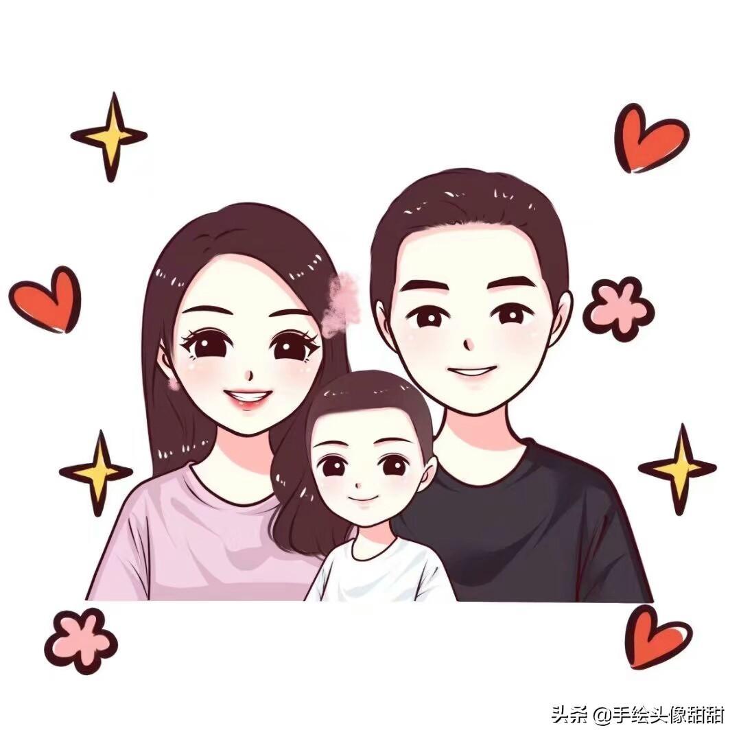 一家三口,一家四口漫画头像大集合,全家福温馨手绘头像自取