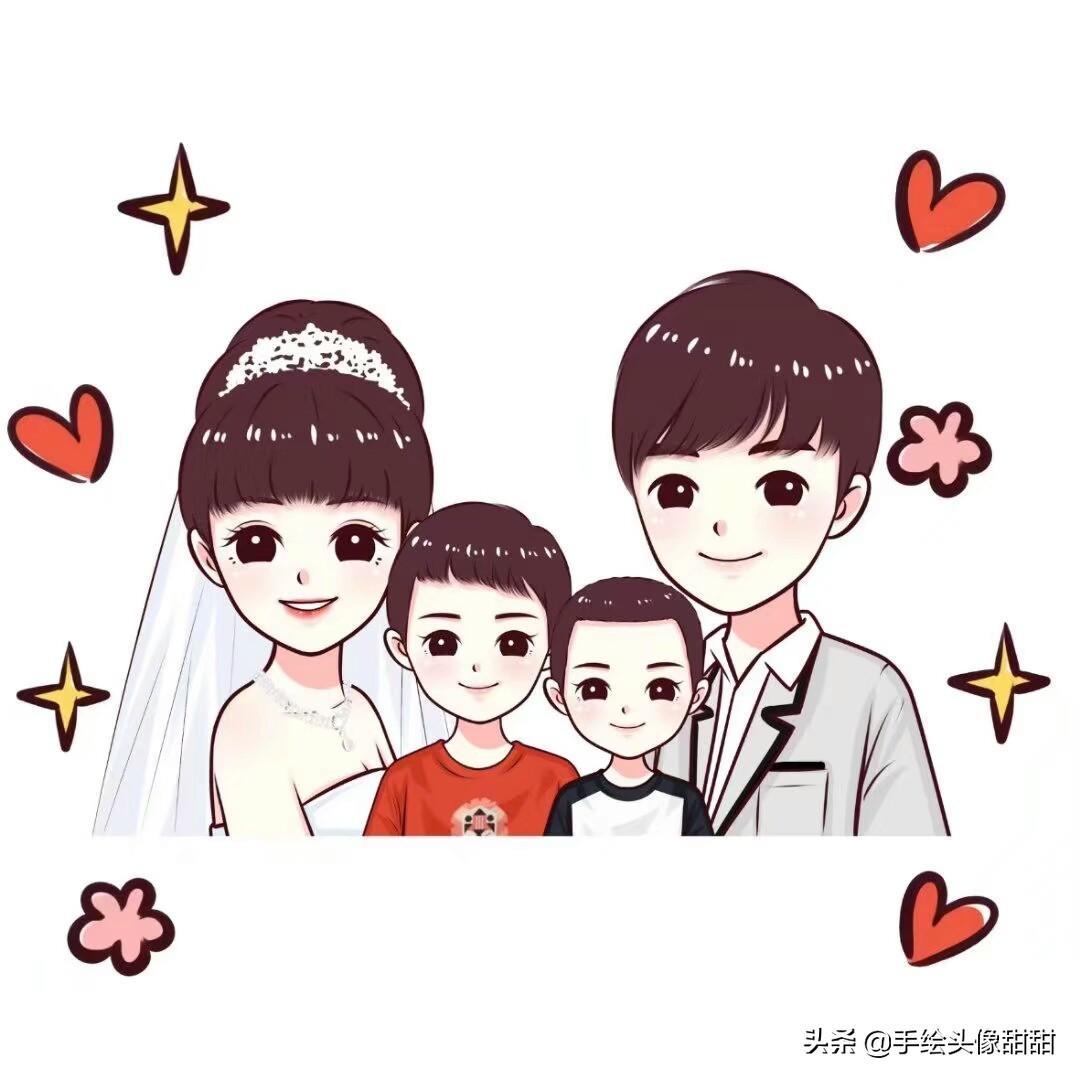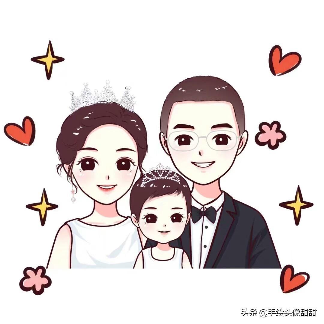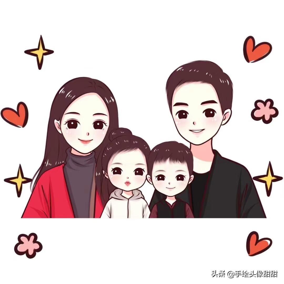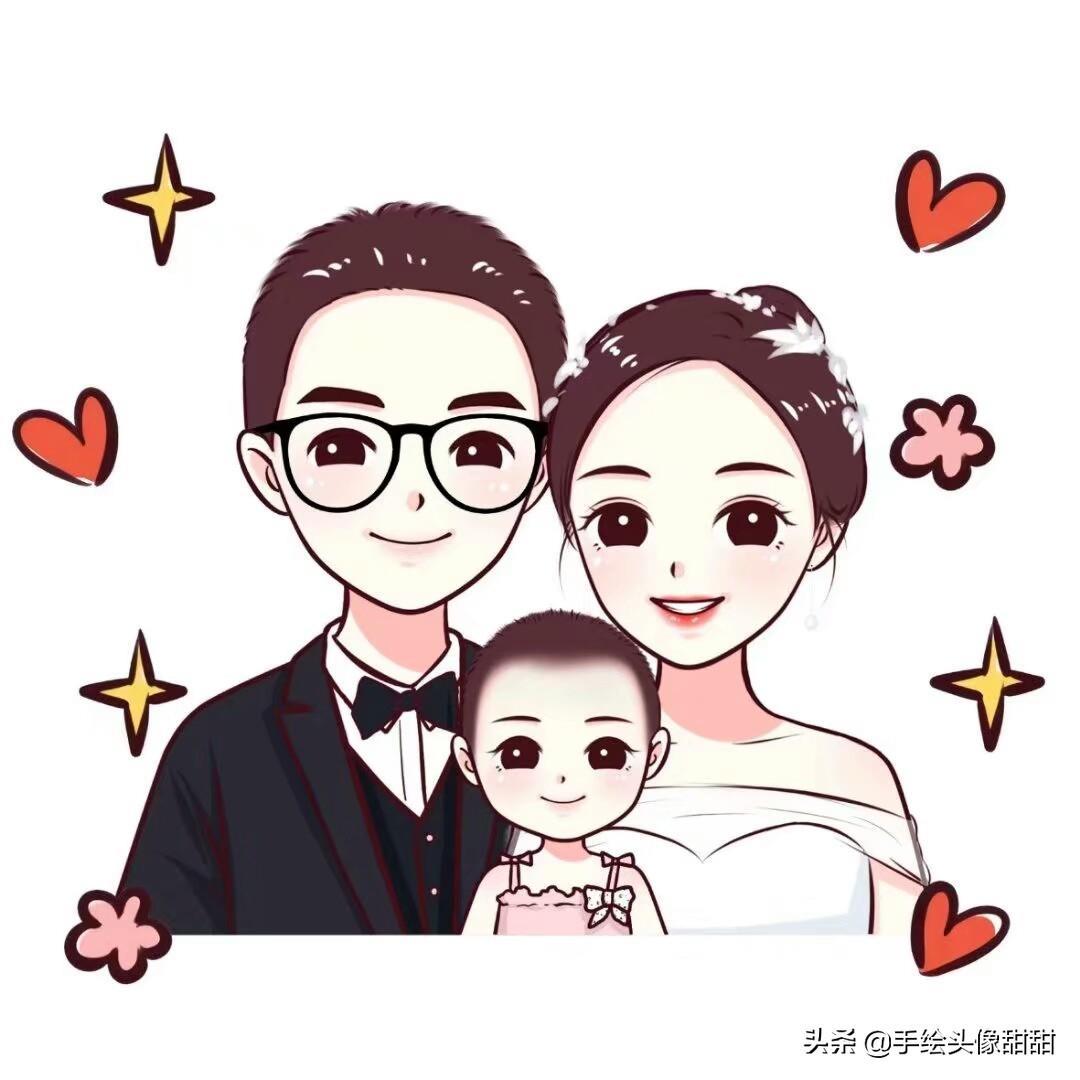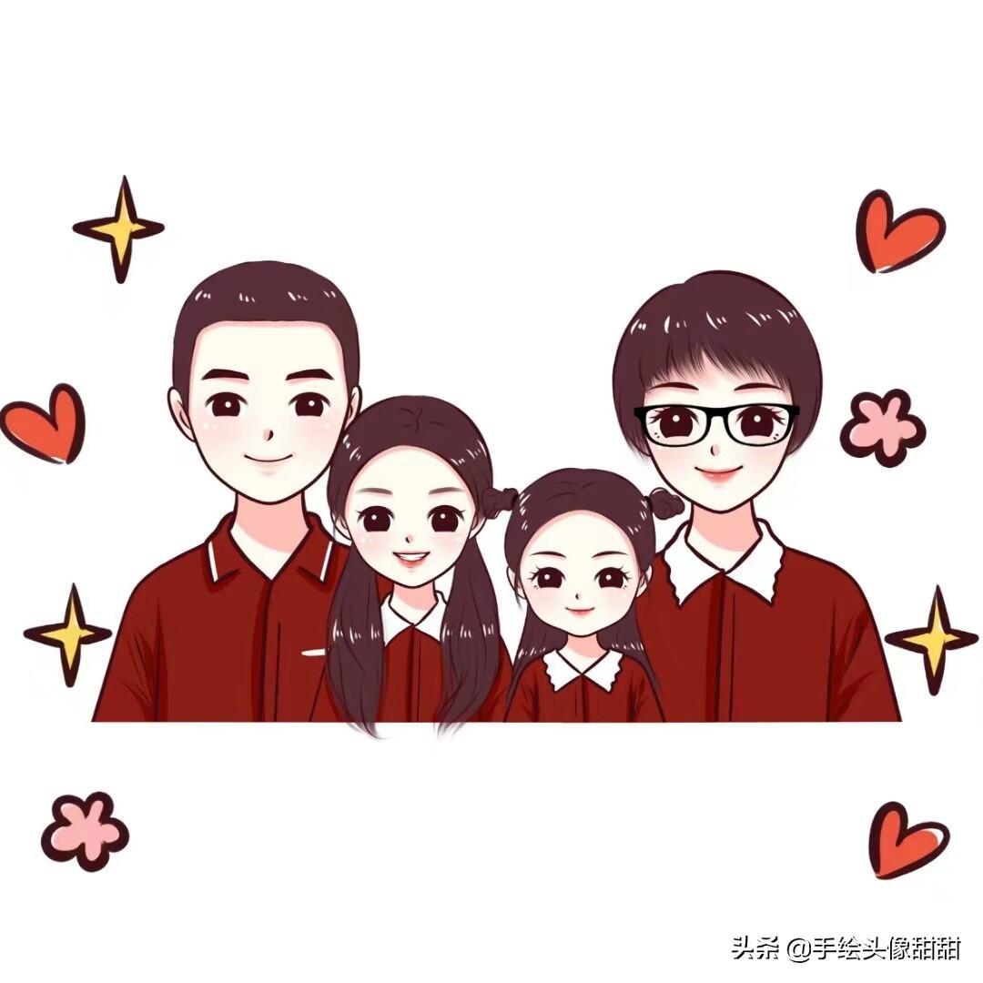 一家三口,一家四口漫画头像大集合,全家福温馨手绘头像自取