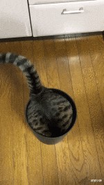 搞笑GIF开心一刻:这就是传说中的把猫装进垃圾桶里的场面?