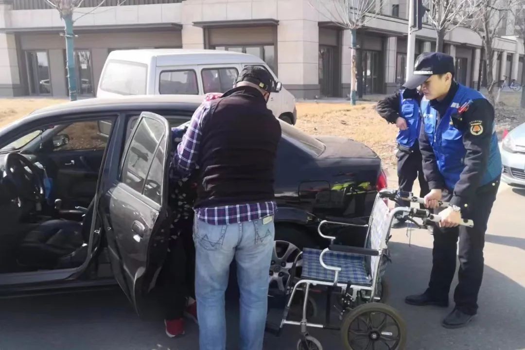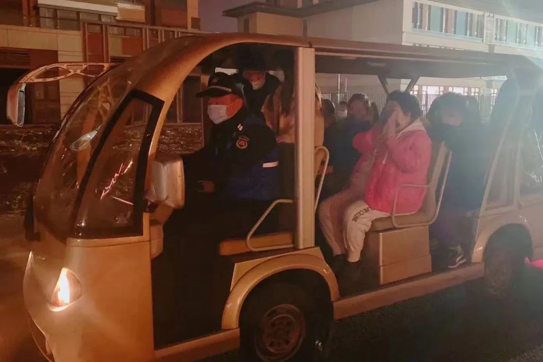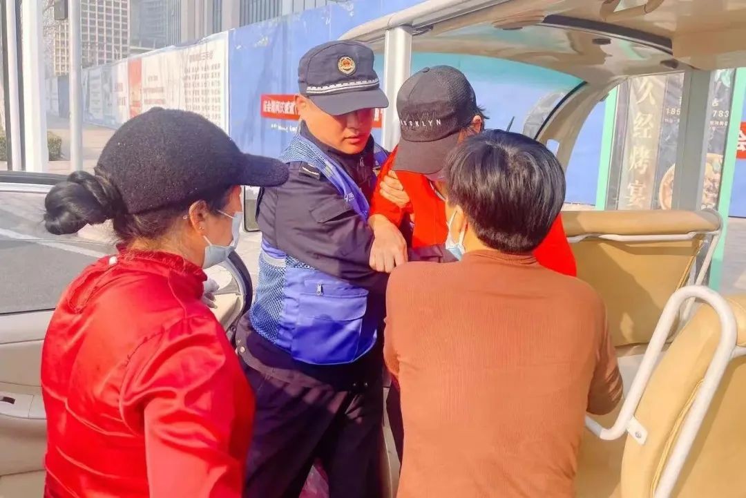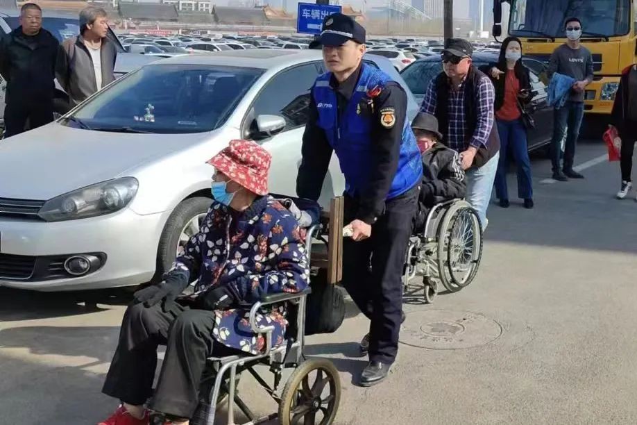 由于活动中心区域距离出口路程较长,行动不便的人员容易疲惫,执法队员、社工、志愿者们协调景区观光车将行动困难人员运送到了目的地。